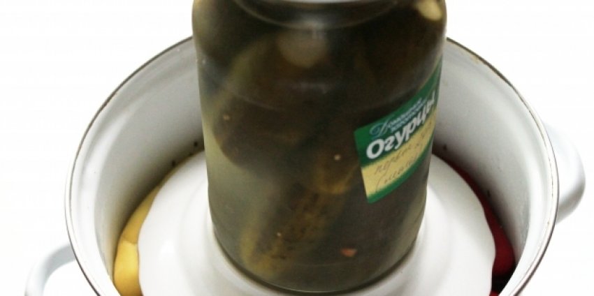 Остиглим розсолом заливається овоч. Поверх банки встановлюється гніт.![]()