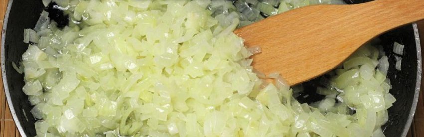 Цибуля подрібнюється і пассеруется на сковороді в маслі.![]()
