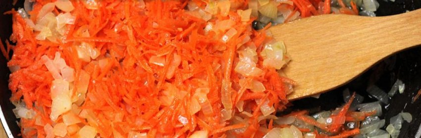 - Цибулю шинкуется, морквина треться на тертці. Ці овочі обсмажують до рум'яного стану.