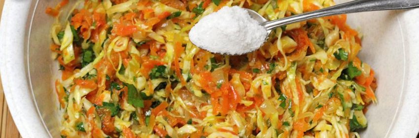 Овочі зі сковорідки зсипаються до капусти, перемішуються, солятся і залишають на чверть години просочитися.![]()
