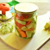 - Овочевий сік прокип'ятити з цукром, оцтом і рослинним маслом, і залити цією сумішшю овочі так, щоб вони були повністю вкриті.