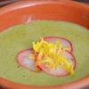 - Розлив вийшов крем-суп із зелені редиски по тарілках, прикрасити його гуртками підсмаженого коренеплоду і поперчити за смаком.