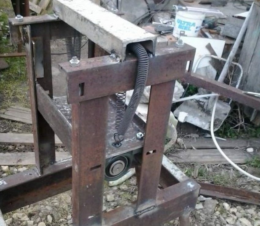 - Підвісити на пружинах майданчик з роликом до верхній частині станини.