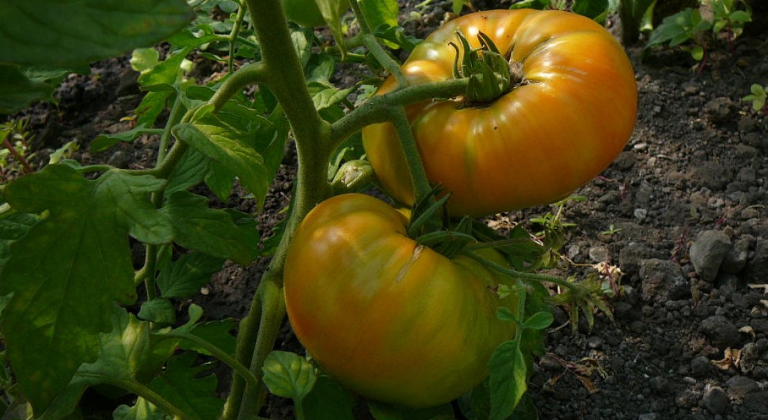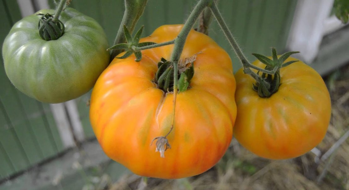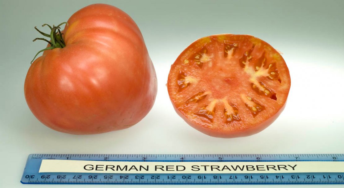 Німецький сорт "Страйп Герман" дивує нас своїм кольором, ці капризні смугасті помідори пофарбовані у жовто-рожево-оранжево-кораловий мікс. Кущі середні, високоврожайні. Розмір плодів 300-400 г, вони нерівні, але смачні і соковиті, мають дієтичні властивості.