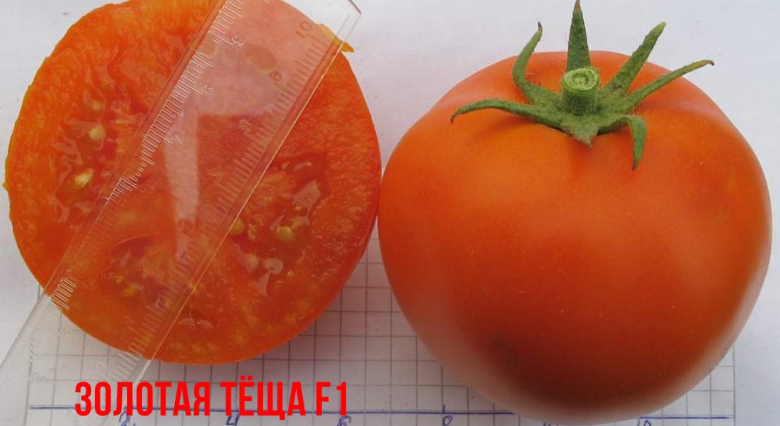 Золота теща F1 - раннєспілий гібрид, який підходить для вирощування у теплицях і на грядках. Помідори круглої форми, помаранчевого кольору, середнього розміру. Врожайністю гібрид має середню. Смак - приємний і яскраво виражений. Плоди можна вживати як у свіжому, так і в переробленому вигляді. Помідори не схильні до тріщин. Гібрид стійкий до хвороб і посухи.
