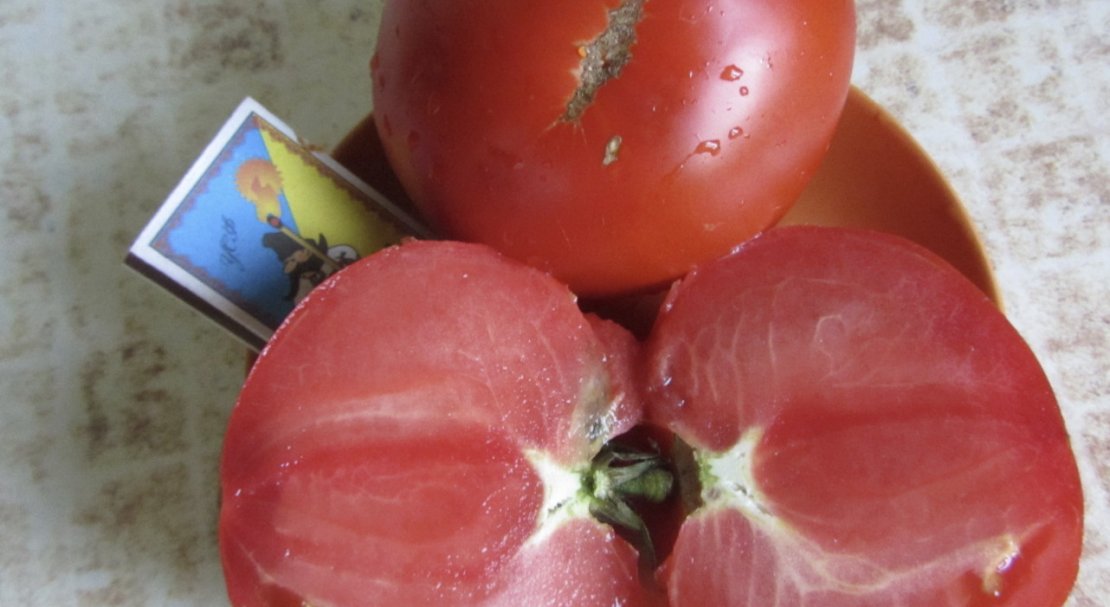 - плоди мають серцеподібну, ребристу форму, їх маса коливається в межах 200-500 м, але виростають і томати-гіганти, вага яких досягає 1 кг;