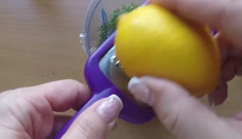 Лимон ретельно миють і витирають кухонним рушником. З допомогою терки натирають одну чайну ложку лимонної цедри, яку поміщають в чашку подрібнювача.![]()
