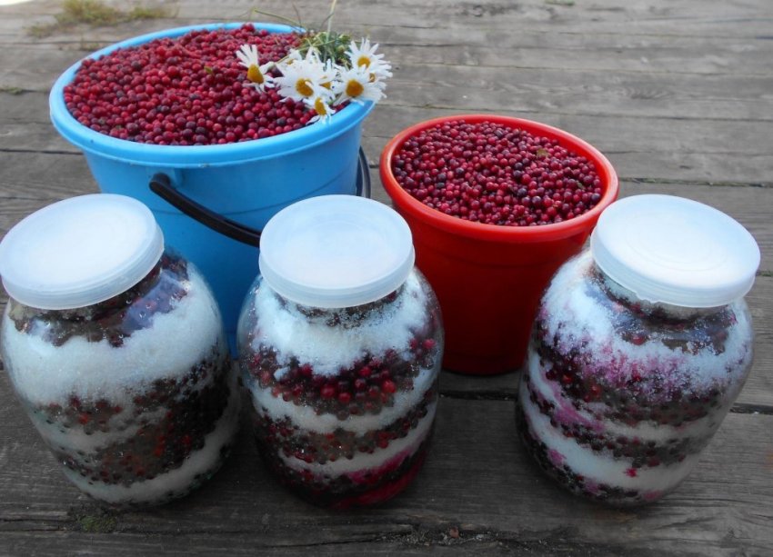 Для заготовок збирають тільки зрілі ягоди, оскільки зелені не придатні для зберігання і вживання в їжу. Бажано проводити заготівельні роботи в серпні - вересні. Завдяки наявності у складі брусниці великої кількості корисних речовин, а також органічних кислот, вона може тривалий час чудово зберігати свої властивості.