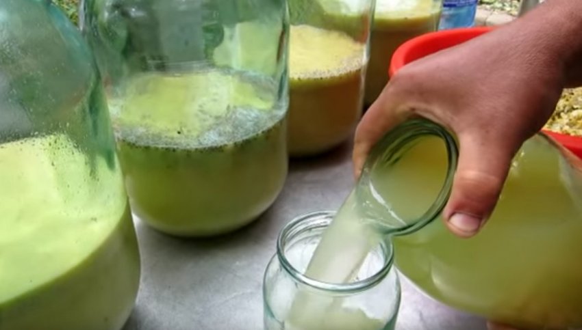 - Коли сусло готове, віджати сік і перелити його в скляний бутель. Додати трохи макухи, щоб зберегти достатню кількість дріжджів у напої.