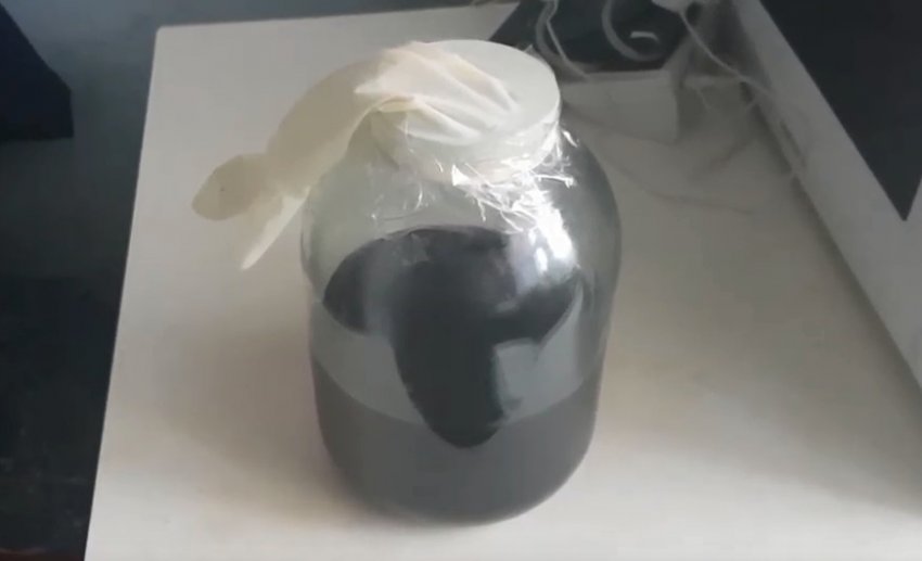 - Перелити пюре в посуд із вузьким горлом, додати воду, ретельно збовтати, встановити гідрозатвор.