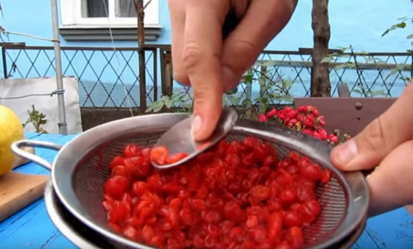 Перетерти ягоди через друшляк - із зазначеної кількості вийде близько 200 мл калинового соку.![]()