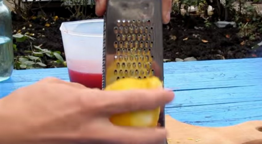 Помістити цедру в посудину з соком і сиропом.![]()
