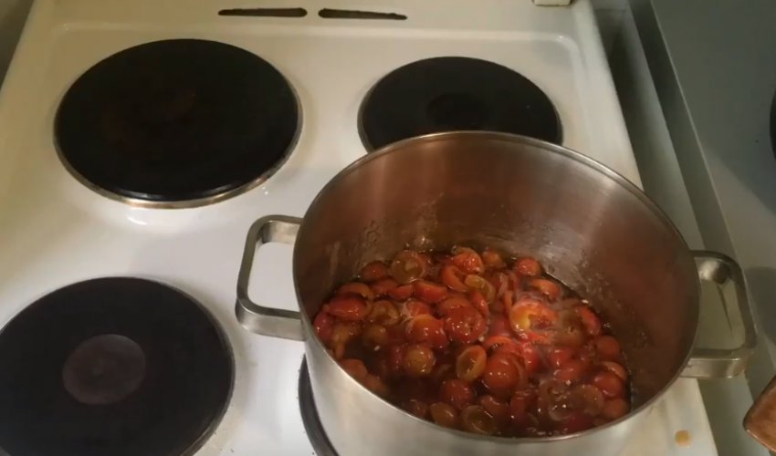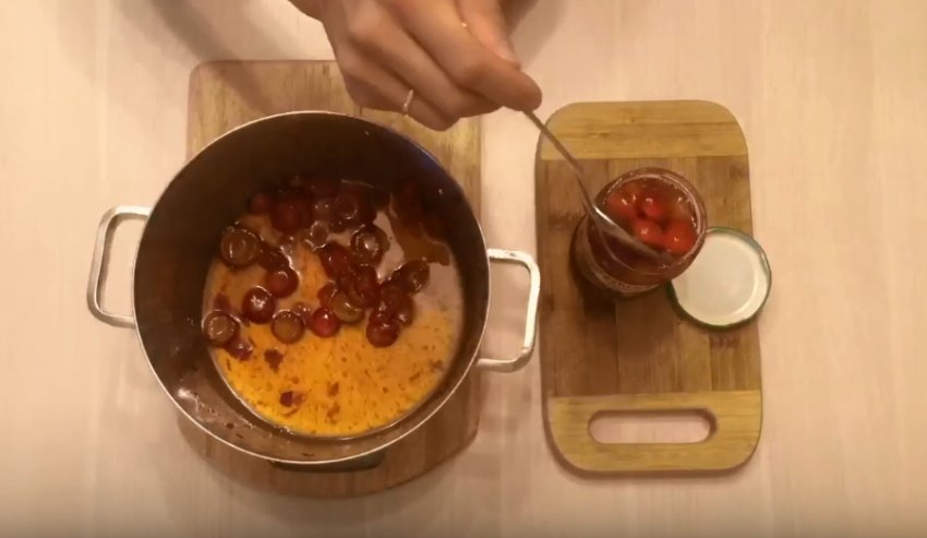 Тим часом у розігрітій до +150°C духовці простерилізуйте банки і кришки протягом 3 хв.![]()