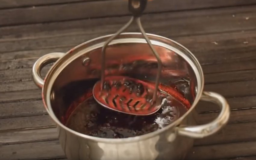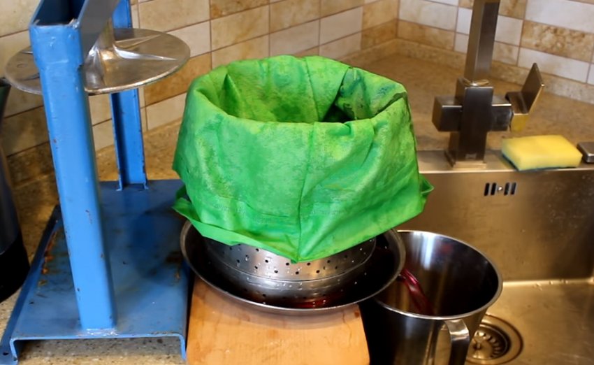 Через зазначений час рідину потрібно профільтрувати, використовуючи марлю або спеціальний мішок для фільтрації ягід. Сік потрібно злити, а ягоди, що залишилися, ретельно віджати, щоб отримати ще більше рідини.![]()