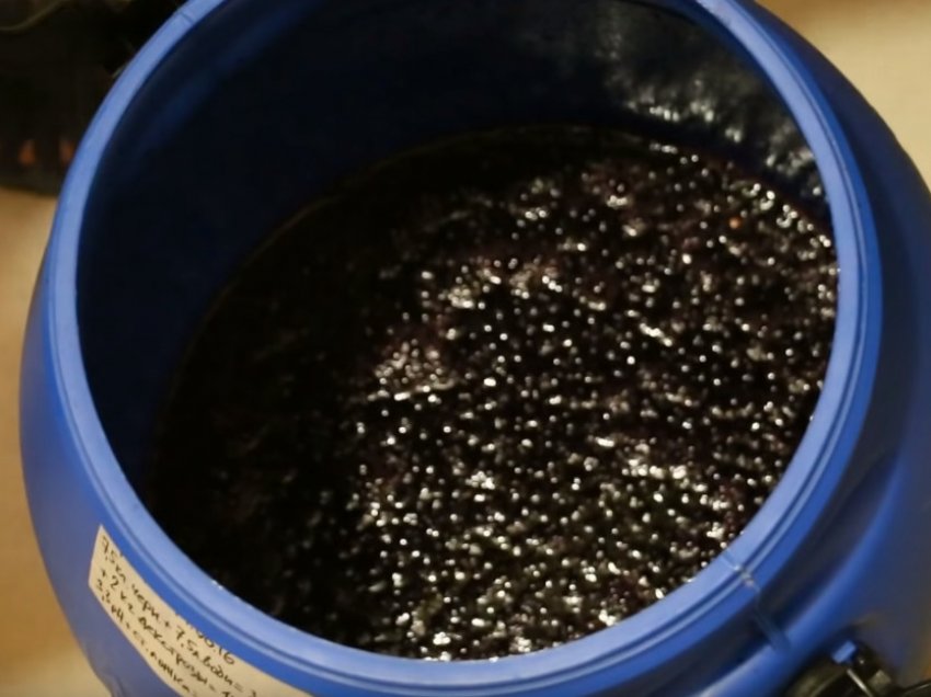 Через добу віджати мезгу, змішати з виноматеріалом і додати решту цукру. Перемішати.![]()