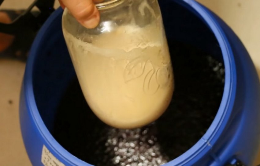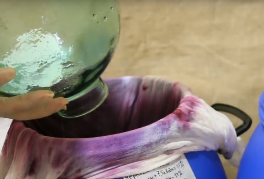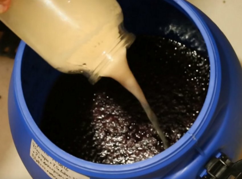 Додати дріжджі у виноматеріал, перемішати. Прикрити плівкою ємність, 2-3 рази на день перемішувати.![]()