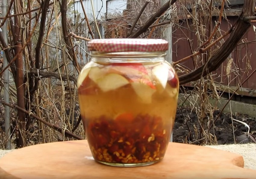 Насипати в банку шипшину і нарізане часточками яблуко.![]()