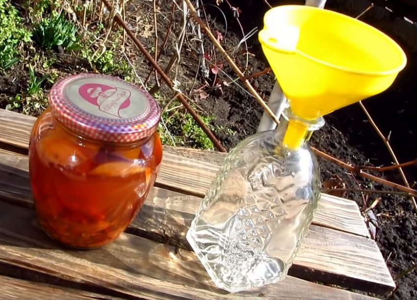 - Змішати самогон, цукор і плоди в скляній ємності.
