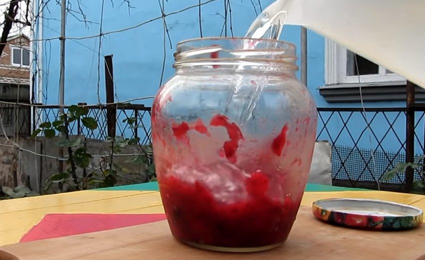 - Перебрані та вимиті ягоди заливають окропом. Тримають 3-5 хвилин і зливають воду.