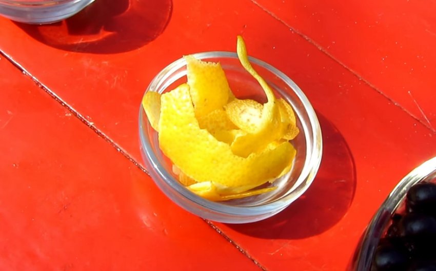 Зняти з половинки лимона гострим ножем цедру, намагаючись мінімізувати наявність білої шкірки.![]()