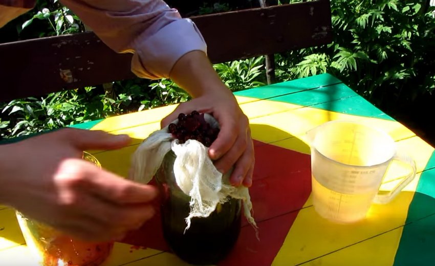 Відфільтрувати і віджати настоянку через кілька шарів марлі в банку.![]()