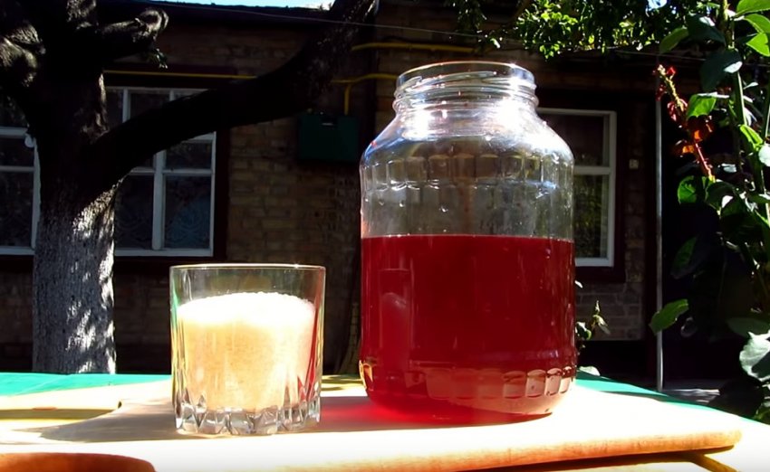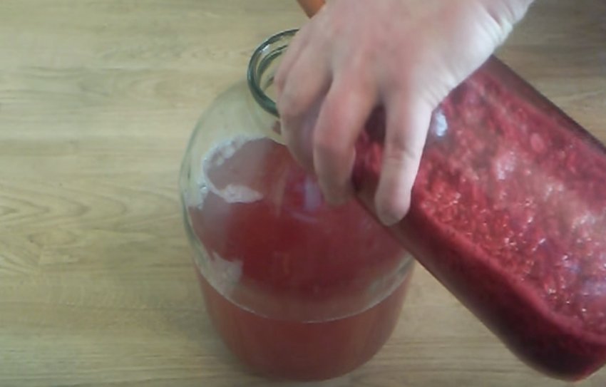 Віджати сік. Спробувати рідину на кислоту. Додати цукор, якщо вона занадто кисла. Долити воду, якщо вона дуже концентрована. Влити малинову закваску.![]()