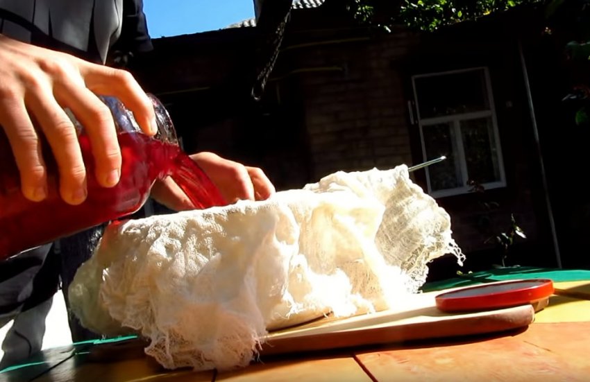 Відфільтрувати через марлю, складену в 2 шари.![]()