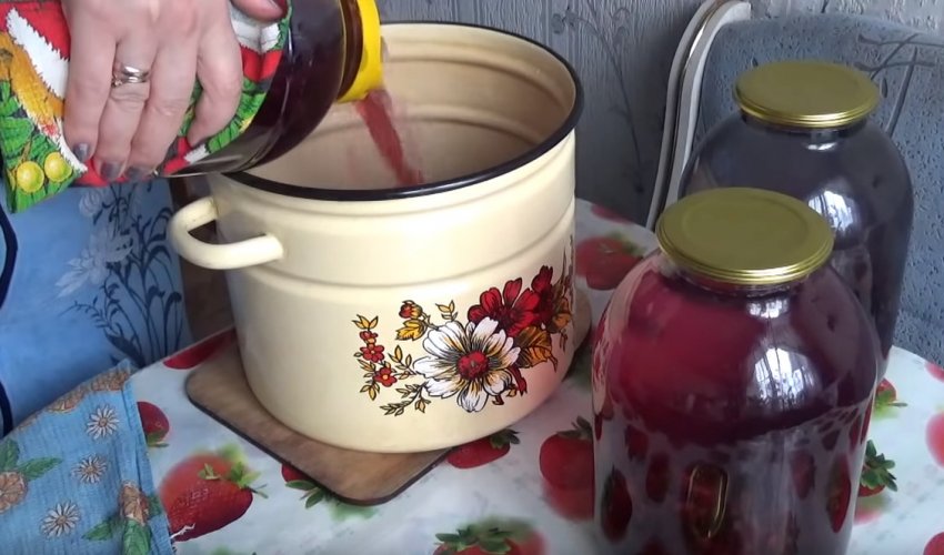 Залити отриманий сироп у ємності з ягідною сумішшю.![]()