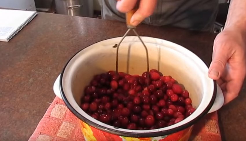 За допомогою маточки подрібніть журавлину, щоб вона пустила сік.![]()