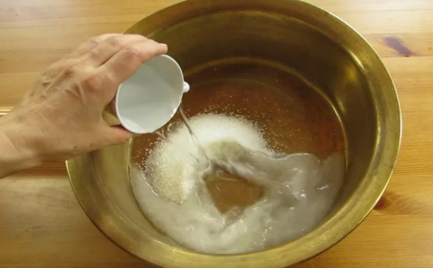 Заздалегідь зробіть цукровий сироп. Для його приготування потрібно змішати воду та цукор, варити на повільному вогні 15-20 хвилин.![]()