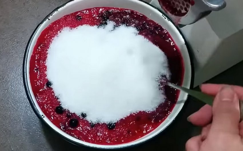 700 г смородини подрібнити на м'ясорубці, як і малину.![]()