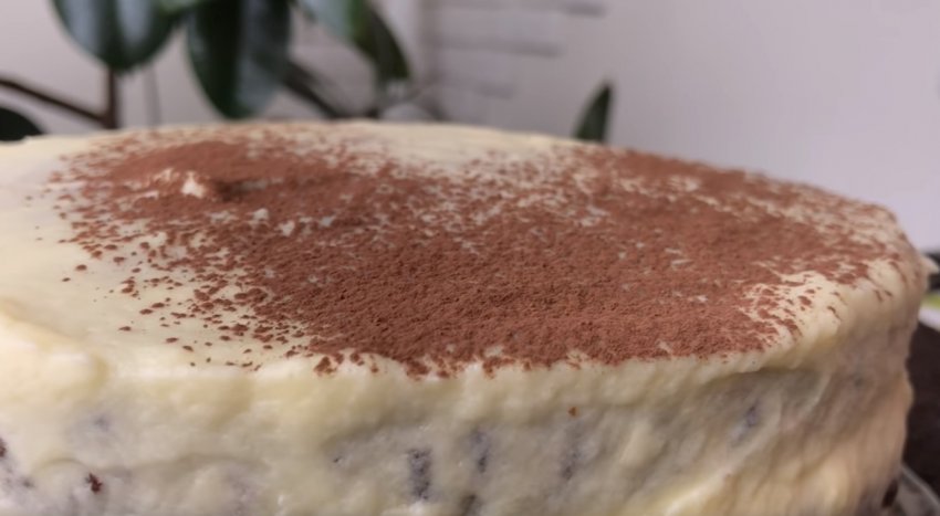 Готовий торт посипають зверху какао-порошком або тертим шоколадом.![]()