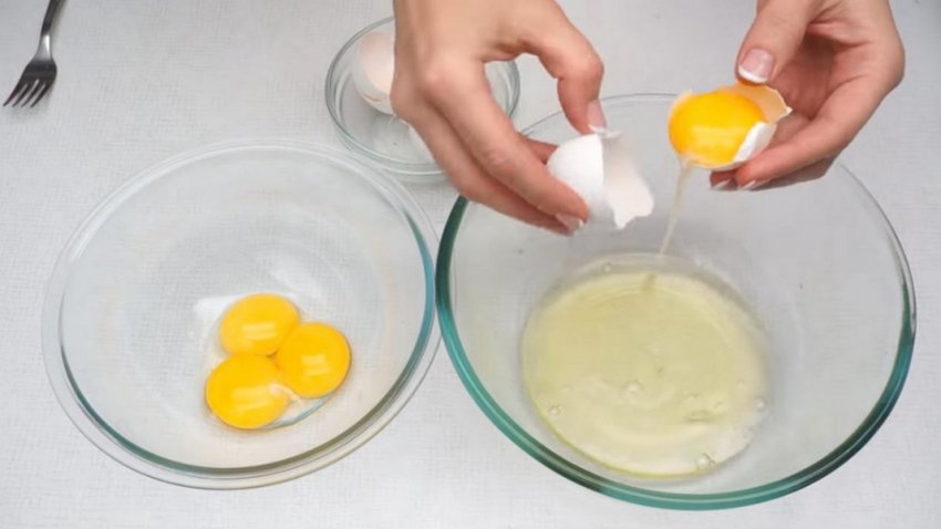 У білки додається сіль, після чого вони збиваються міксером до стану піни.![]()