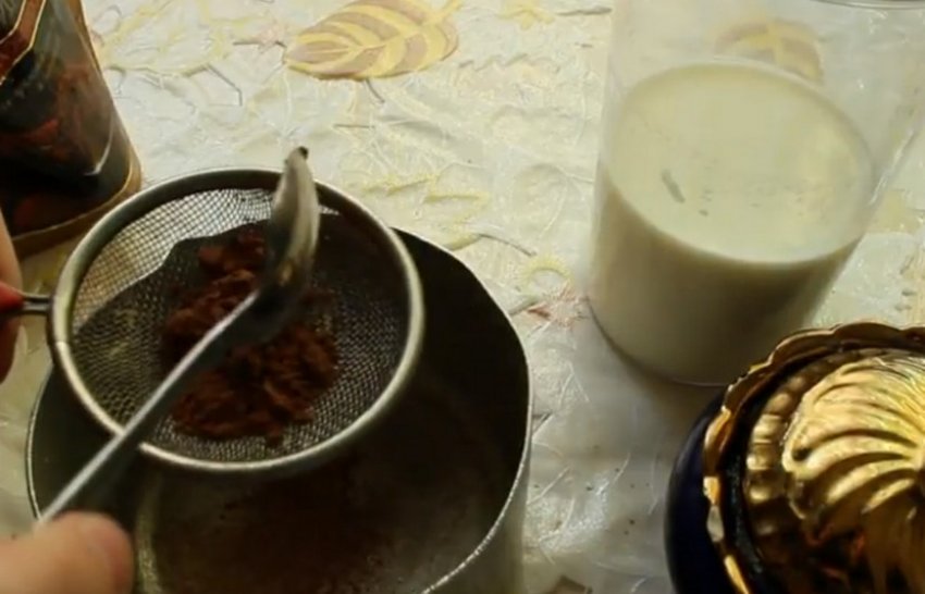 За 10 хвилин до готовності приступити до приготування глазурі: просіяти какао через сито, змішати з цукром, ввести молоко, поставити на слабкий вогонь.![]()