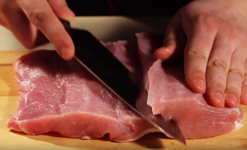 Розріжте м'ясо від краю до центру так, щоб округлий шматочок став плоским і широким.![]()