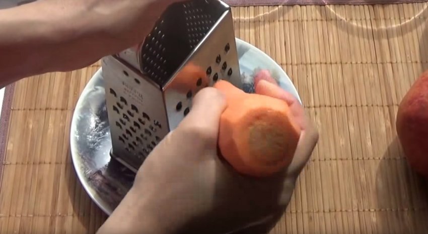 Натріть моркву на середній тертці і злегка спасеруйте на рослинній олії. Викладіть на сито, щоб видалити надлишки жиру.![]()