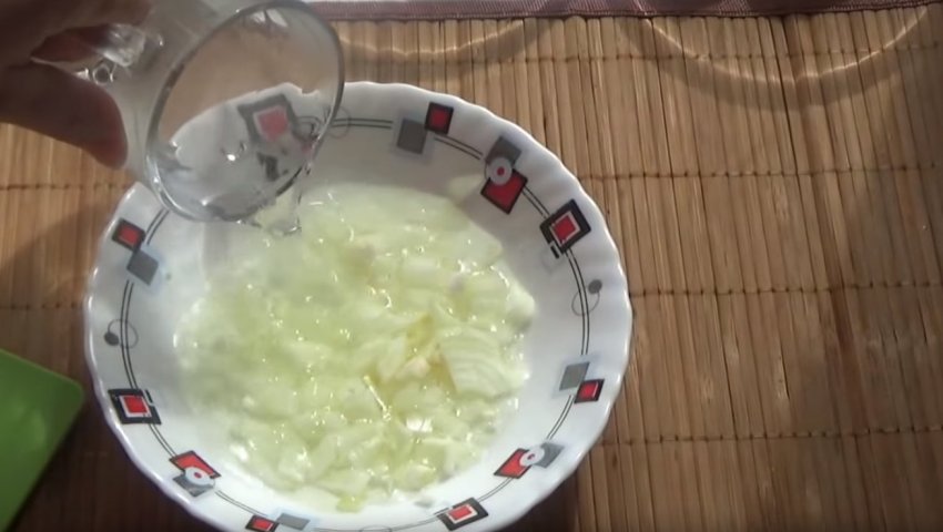 Цибулю поріжте і залийте окропом на пару хвилин для видалення гіркоти, потім відцідіть.![]()