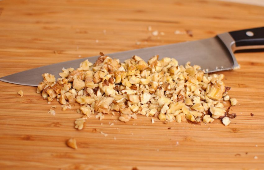 - Очищені горіхи слід залити окропом на 2-3 хвилини, щоб прибрати гіркоту зі шкірки. Потім обсушити і знову замочити в холодній воді. Вимочування надає волоським горіхам красивої текстури та смаку свіжих - такі горіхи набагато смачніші за сухі. Ще одна процедура поліпшить смак - прожарювання на сковорідці, в духовці або в мікрохвильовці. А якщо при цьому ще збризнути їх медовою водою, то вийдуть карамелізовані горіхи.