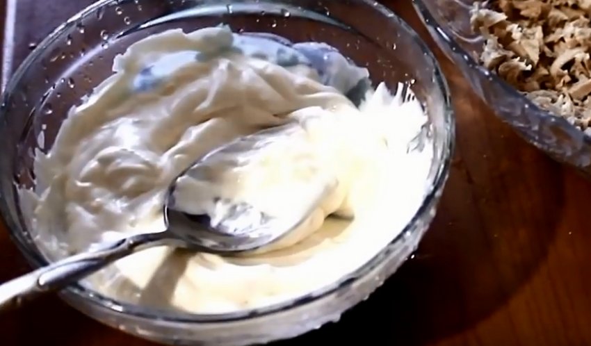 Змішайте майонез із роздавленим часником і дайте йому настоятися близько 5 хвилин.![]()