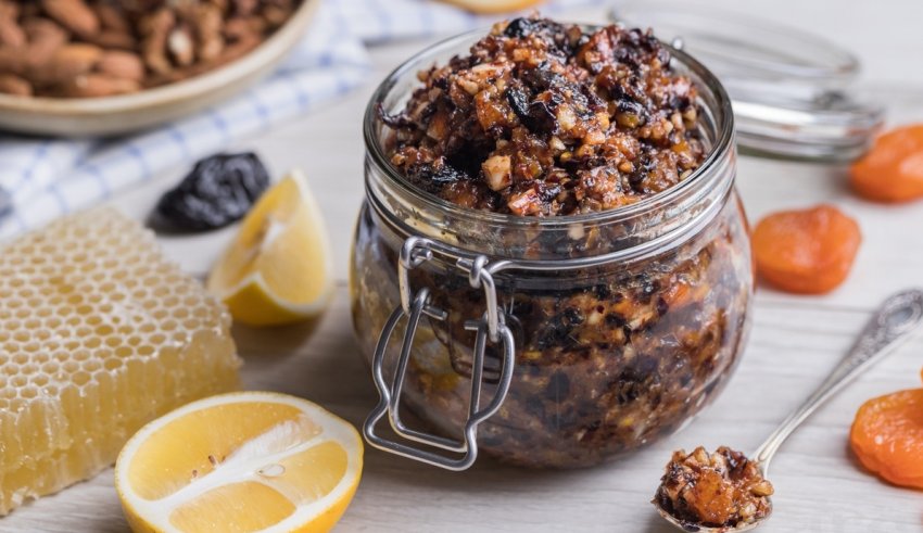 Досить скласти 300-400 г горіхів у 0,5 л банку і залити їх медом. Продукт не потрібно настоювати. Він одразу ж готовий до вживання. Їсти смачну горіхову суміш рекомендується по 1 ст. ложці 2 рази на день, натщесерце - вранці та ввечері.
