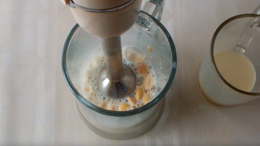 Подрібніть мигдаль блендером, додавши до нього 2/3 всього наявного молока (так перетирати його буде набагато простіше).![]()