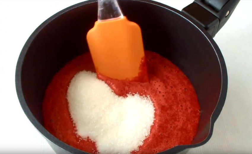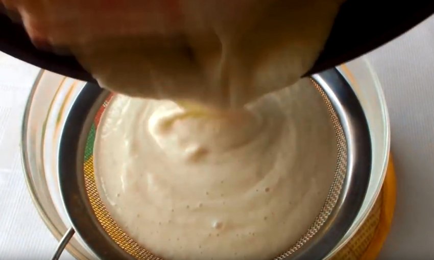 Зніміть майбутнє суфле з плити і перетріть через дрібне сито, щоб відокремити непотрібні великі шматочки і решту частинок шкірки.![]()