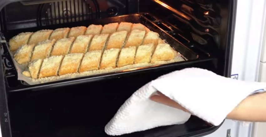 Духовку слід заздалегідь розігріти до +190°С. Потім всередину відправте деко з майбутнім пирогом і витримайте його 15 хвилин.![]()