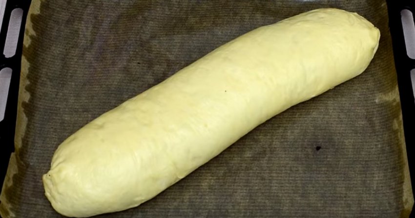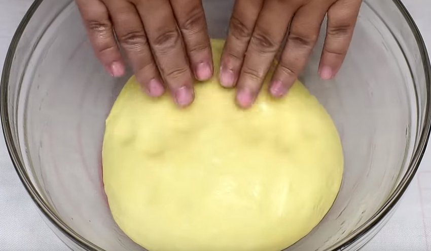 Викладіть його в миску і накрийте харчовою плівкою. Відправте в тепле місце. У такому вигляді залиште на 1 годину.![]()