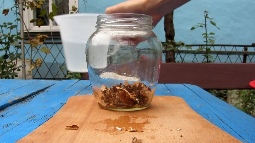 У стерильну ємність (літрову банку) засипаються перетинки і заливаються самогоном. Банку слід щільно закрити і залишити в захищеному від прямих сонячних променів місці на 10 днів.![]()
