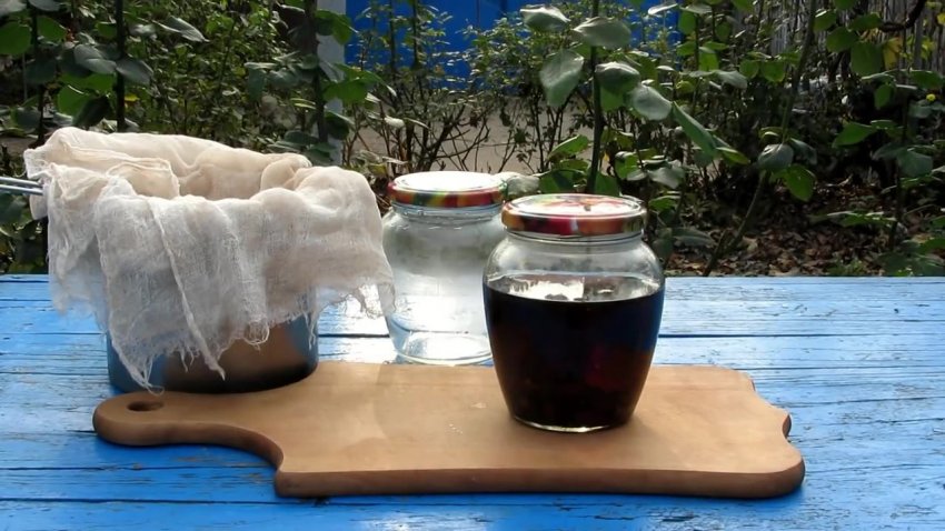Після закінчення цього терміну настоянку слід процідити. До цього часу вона вже набуває характерного темного відтінку. Для проціджування можна використовувати складену в кілька шарів марлю. Перегородки, що залишилися, рекомендується віджати, так із них вийде додаткова рідина.![]()