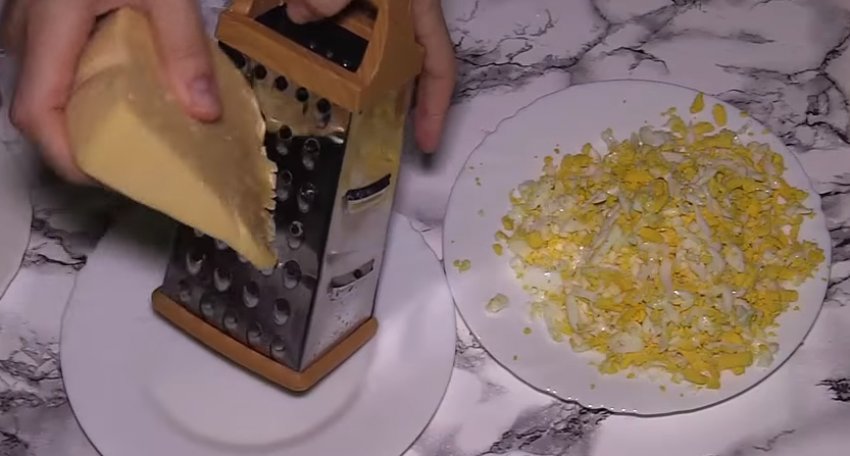Яйця розділити на білки та жовтки. Окремо їх натерти.![]()