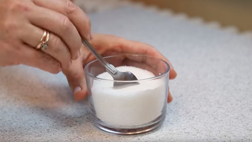 Потім 125 г цукру додати до отриманої раніше крихти і підмішати невелику кількість ваніліну, щоб тісто надалі набуло м'якого і ненав'язливого аромату.![]()