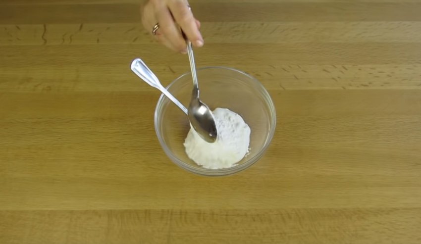 Після того, як 4 коржі будуть готові, варто приготувати суміш для просочення. Для цього взяти сметану будь-якої жирності, до якої за смаком підмішати цукрову пудру.![]()