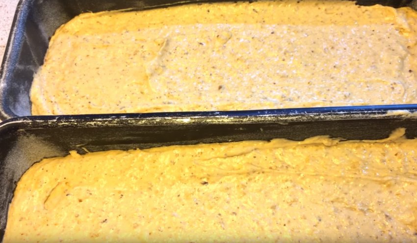 Підготовлене тісто викласти у форму з розмірами 30×10×15 см. Випікати пиріг потрібно близько 40-45 хвилин при температурі духовки в +170°С.![]()